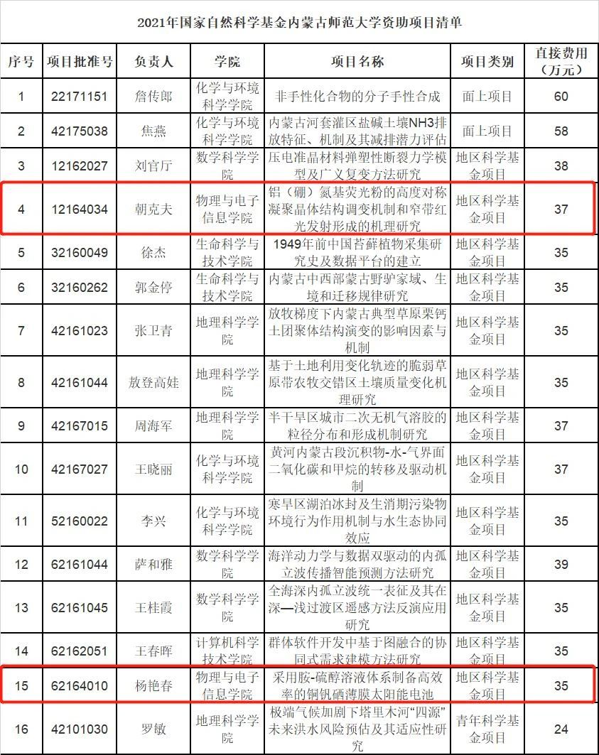 8月18日,国家自然科学基金委公布了2021年集中申报期国家自然科学项目评审结果,我校共获批国家自然科学基金项目16项,其中,我院获批国家自然科学基金项目两项。