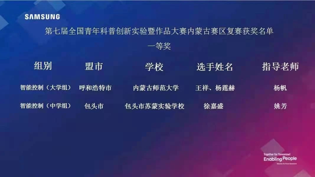 4月25日,由内蒙古科协、内蒙古教育厅主办,内蒙古科技馆承办的第七届全国青年科普创新实验暨作品大赛内蒙古赛区复赛在内蒙古科技馆圆满落幕。经过作品陈述、现场答辩、现场实验制作等环节紧张激烈的比拼,由yl23455永利集团杨帆副教授指导,2019级电子信息工程1班本科生王祥、杨霆赫负责的《基于外骨骼的智能机械手 》作品,获得智能控制(大学组)一等奖(第一名),他们将代表内蒙古赛区参加6月举行的全国总决赛。