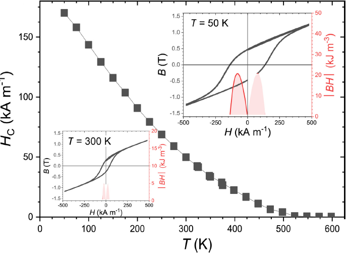 科研团队针对此问题对(Fe,Co)2(P,Si)系列材料展开了系统的结构与永磁性能研究。该团队设计和制备了新颖的(Fe,Co)2(P,Si)单晶和亚微米晶粒,通过微观组织调控永磁性能和磁畴结构分析,成功研制出在室温下具有大磁晶各向异性、高居里温度和大饱和磁化强度,理论最大磁能积达到|BH|max ≈ 165 kJ m-3的永磁材料。该材料完全由3d过渡金属和非金属元素构成,具有成本较低和资源广泛的优点,有望填补稀土永磁和铁氧体之间的空缺。该研究为新型无稀土永磁材料的开发提供了理论指导,也为我区获得了原创性知识产权。
