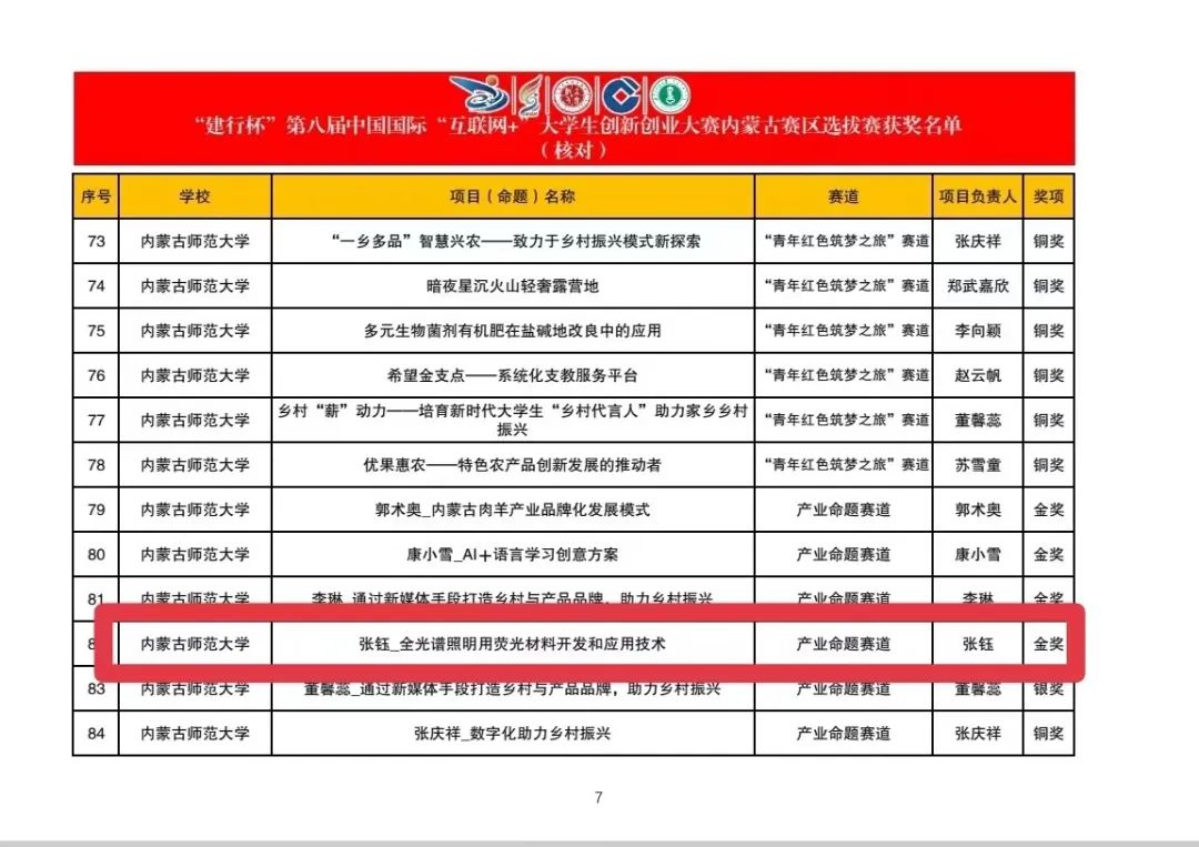 在8月11日刚刚落幕的第八届中国国际“互联网+”大学生创新创业大赛内蒙古赛区选拔赛中,我院《草立方——牧草补光生长方案开创者》《科技下乡---坚持20年的物电学子助力乡村振兴公益服务新模式》《全光谱照明用荧光材料开发和应用技术》三个参赛项目分别斩获高教主赛道、“青年红色筑梦之旅”赛道、产业命题赛道金奖!《扁鹊:非接触人体呼吸检测专家》获得高教主赛道铜奖。其中《科技下乡---坚持20年的物电学子助力乡村振兴公益服务新模式》《全光谱照明用荧光材料开发和应用技术》两个项目获得参加国赛资格。这是我院在“互联网+”赛事取得的又一历史性突破。