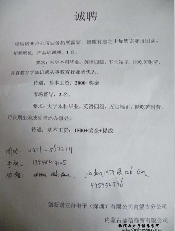 诺亚舟电子公司招聘毕业生