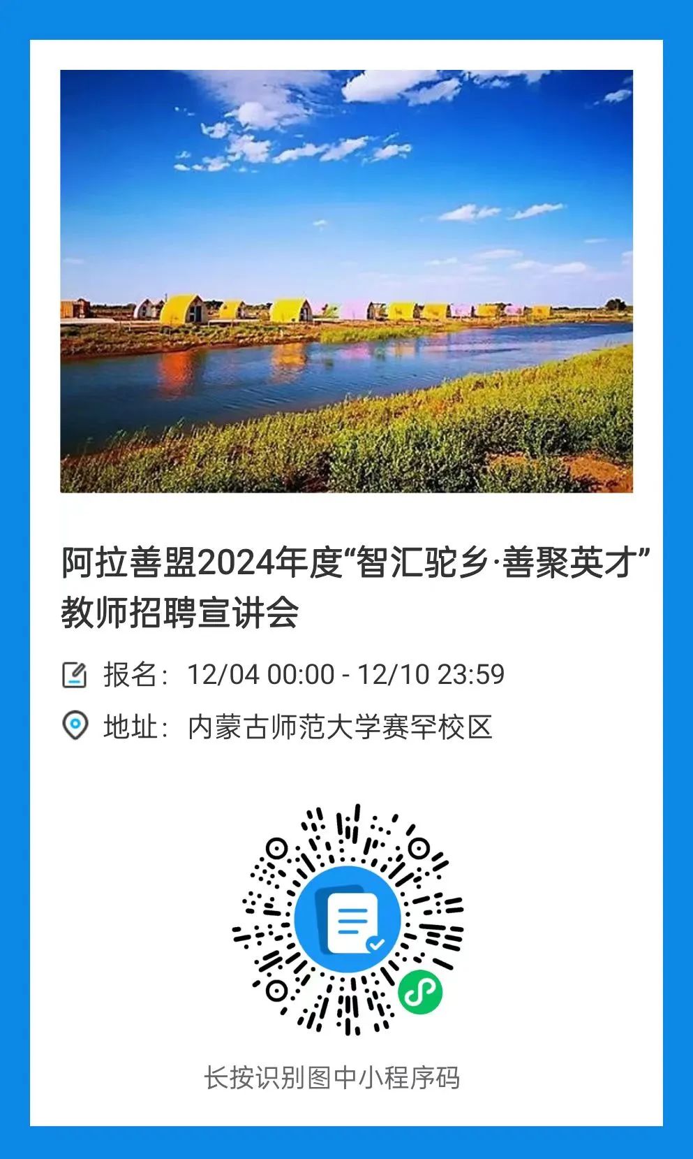 2023年12月10日上午9:00—12:00(内蒙古大学玉泉校区大创中心二楼大厅)。