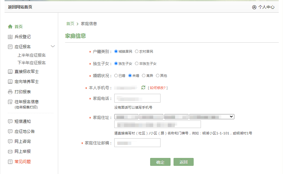 1.男兵报名个人信息需要录入基本信息、学业信息、家庭信息、参军信息等共4类28项信息。