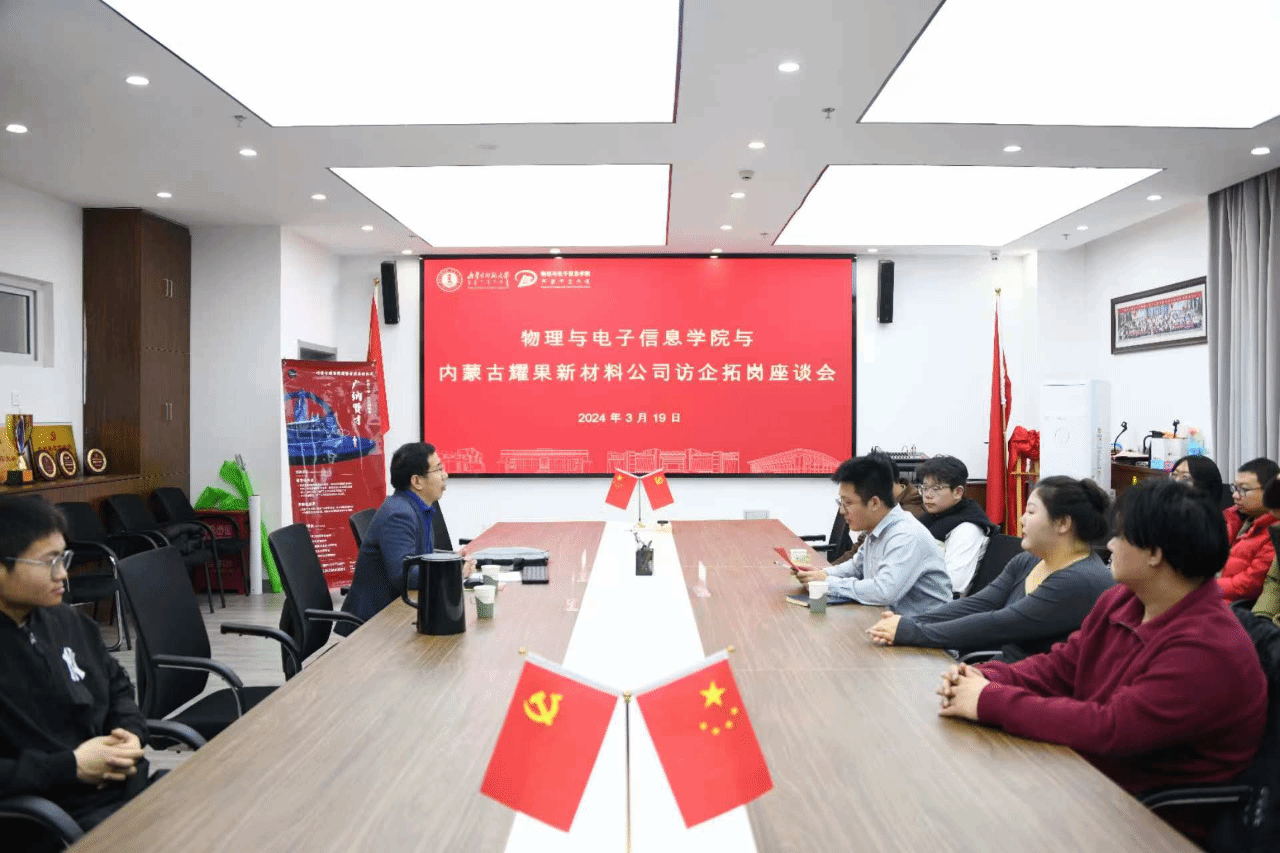 为深化校企协同育人机制,拓宽毕业生就业渠道,促进人才供需精准对接,3月19日上午,yl23455永利集团与内蒙古耀果新材料有限责任公司在理工楼A座举行访企拓岗座谈会暨专场招聘宣讲活动。学院党委副书记欧志强、辅导员冀锦涛与内蒙古耀果新材料科技有限责任公司高耀昌一行人进行洽谈交流,2025届材料物理专业毕业生参加活动。