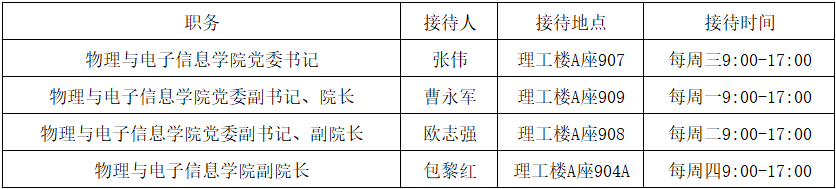 为进一步畅通信息交流渠道,搭建学院领导与广大师生的交流沟通平台,广泛听取各方面意见和建议,学院现设立书记、院长接待日。