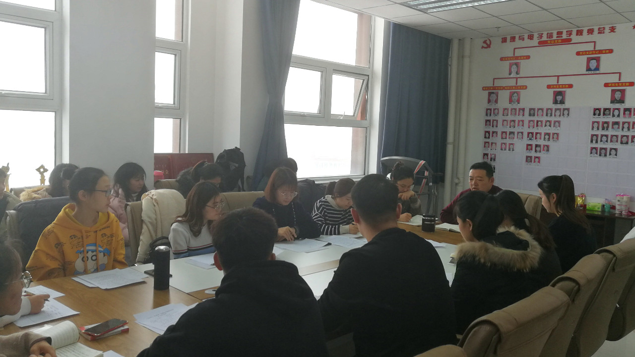 11月29日下午,学院本科生党支部 “不忘初心,牢记使命”主题教育专题组织生活会暨民主评议党员在理工楼A座904B召开。学院党总支副书记兼副院长张伟、辅导员王乐参加,会议由支部宣传委员王紫主持,支部全体党员参加了本次会议。