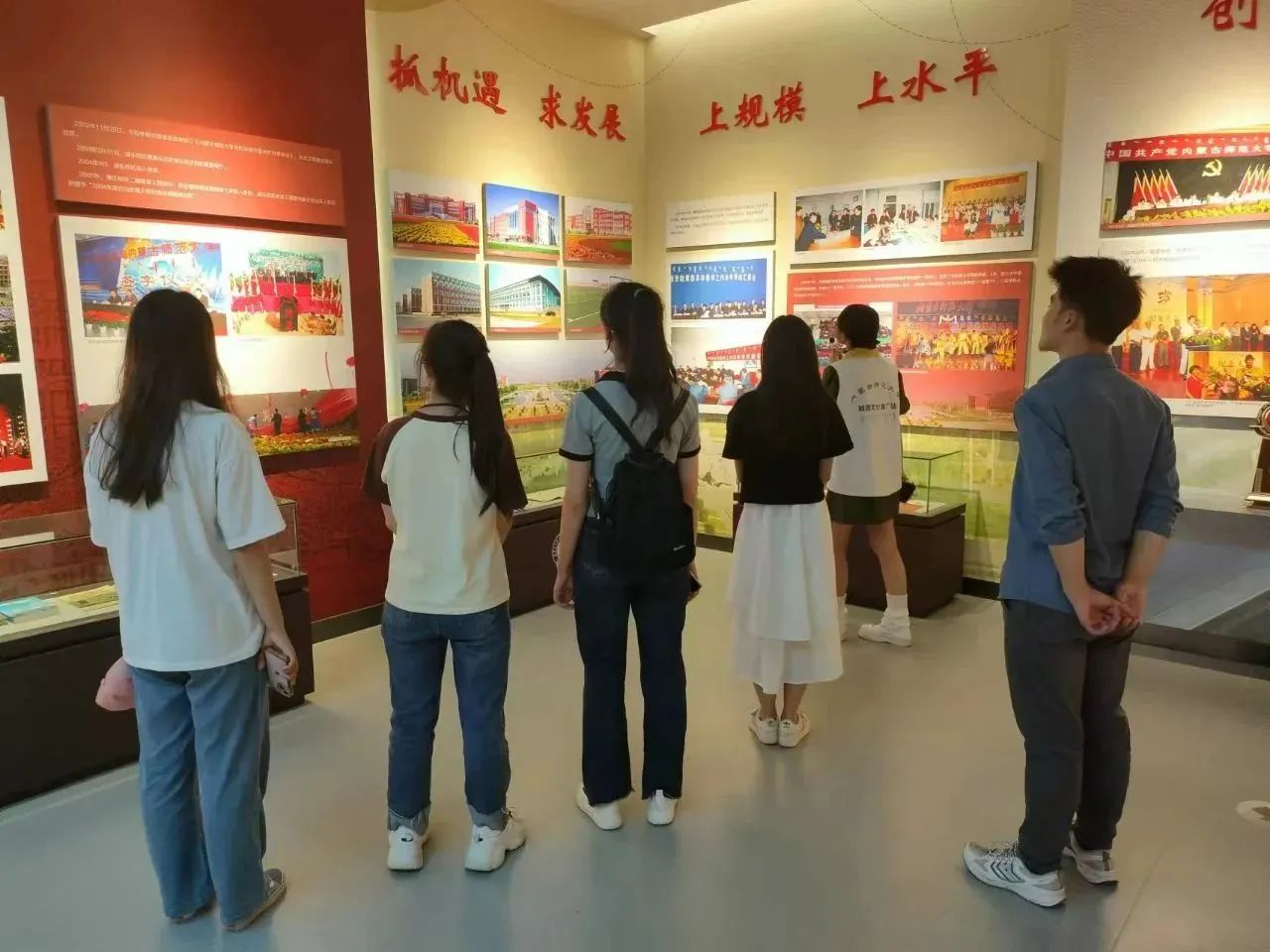 进入校史馆,学生们了解到:我校前身为创建于1952年5月的内蒙古师范学院;1954年3月,由张家口师专和绥远师专合并而成的内蒙古师范专科学院并入内蒙古师范学院;1954年8月,学院由乌兰浩特市迁至呼和浩特市;1982年,学院更名为“yl23455永利”;2000年7月,内蒙古教育学院并入。七十载栉风沐雨,一张张充满时代感的照片呈现在学子的面前,一个个故事浮现在学子的脑海中,展现了一代又一代内师人接续奋斗的历史足迹。