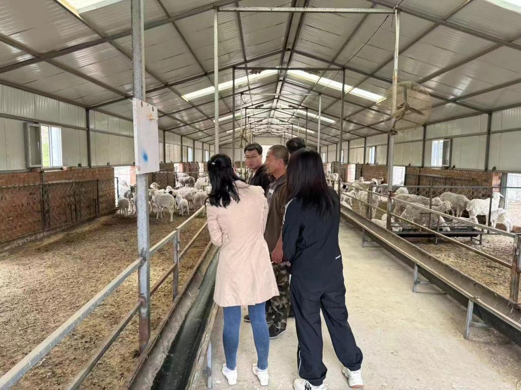 我院教工第二党支部党员一行在林格尔县农牧业局姜涛主任的指引下,首先到内蒙古众欣农牧有限公司进行调研。该公司位于和林格尔县城关镇羊群沟行政村,主要从事牲畜饲养和食品销售,是和林格尔县农牧科技试验示范基地。通过参观企业养殖基地和企业负责人的介绍,详细了解了企业的经营规模、发展现状和研发成果,就校企合作内容进行了深入交流。