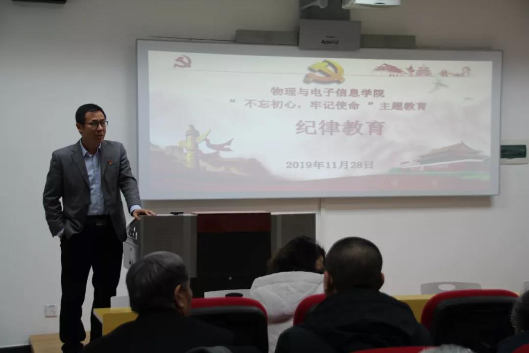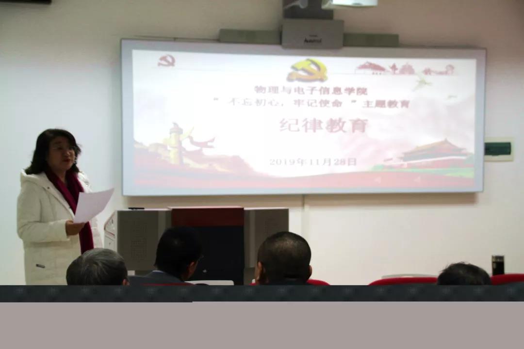 为切实加强纪律建设,推进学院严谨求实的风气建设工作,营造正直清廉的育人环境,11月28日下午,我院于理工楼A座303开展“不忘初心,牢记使命”主题教育之纪律教育专题讲座。讲座由刘美玲书记主持,特邀yl23455永利纪委监察处林海河副处长主讲,全院教职工共计五十余人参加本次讲座。