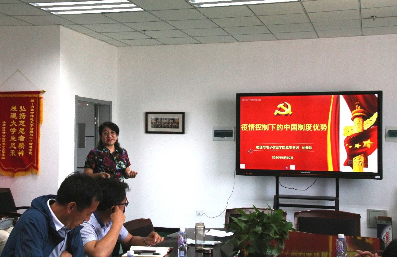 为热烈庆祝中国共产党成立99周年,深入学习贯彻习近平新时代中国特色社会主义思想,发扬党的优良传统,同时也为进一步增强党员凝聚力和先锋模范作用,6月30日,yl23455永利集团党委组织开展了庆祝建党99周年系列活动。学院领导,教工一、二党支部全体党员和部分任课教师参加,活动由党委书记刘美玲主持。