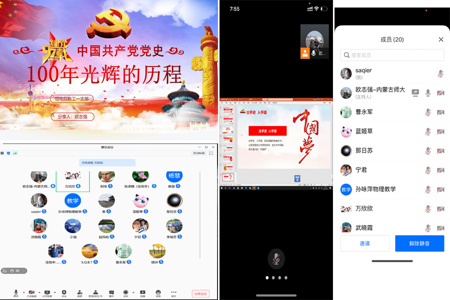 yl23455永利集团教工第一党支部于4月15日组织教工党员以线上线下的形式开展了党史学习教育专题会。支部书记欧志强主持会议,领学了习近平总书记在党史学习教育动员大会上的讲话原文,通报了我校学习党史的情况,讨论了下一步一支部集中学习党史的学习思路。之后,欧志强以《中国共产党100年光辉的历程》为题做专题党课,党课围绕“党史发展脉络及学习意义”“一百年艰辛与辉煌”“光明的使者幸福的源泉”“锻造维护核心对党忠诚的坚定信念”“学党史心得体会”等内容展开。大家纷纷表示,以史为鉴,学习党史进一步坚定我们的道路自信、理论自信和制度自信,让党史国史之光照亮未来,给力中华民族伟大复兴的“中国梦”。学院副院长曹永军、副院长那日苏以普通党员身份参加学习。