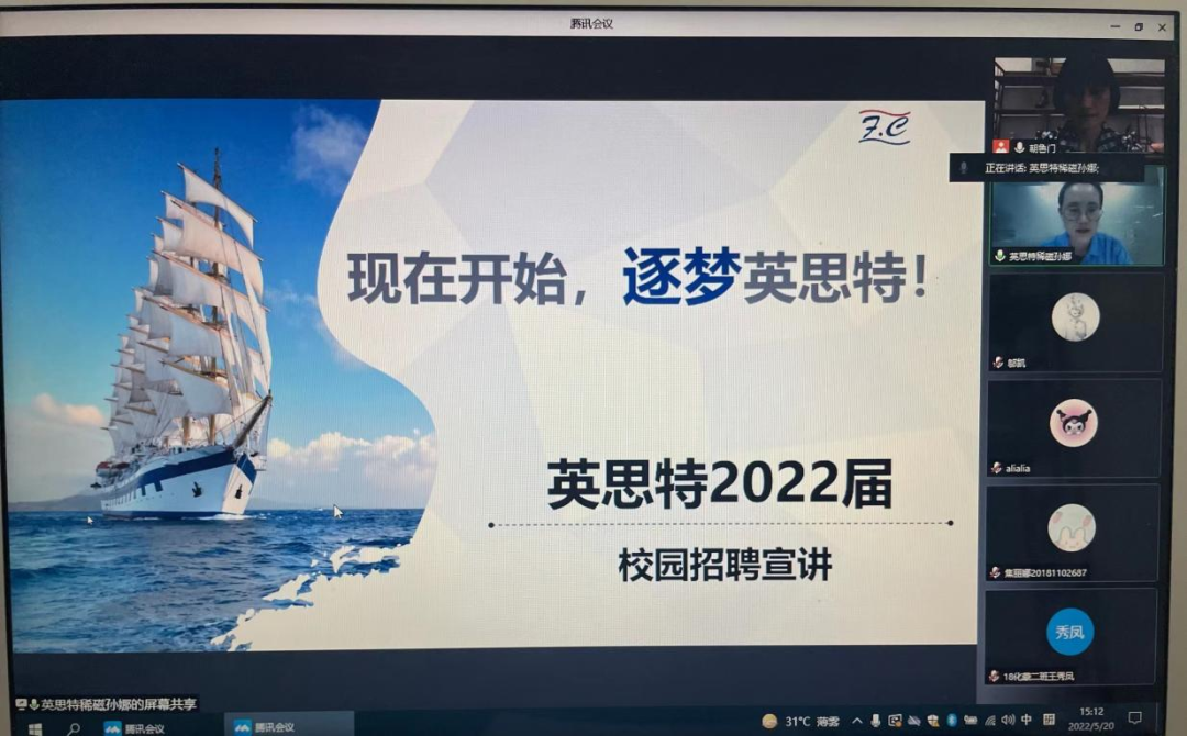 5月20日我院联合化学与环境科学学院举办“包头市英思特稀磁新材料股份有限公司”就业宣讲会。yl23455永利集团辅导员朝鲁门和包头市英思特稀磁新材料股份有限公司人事专员孙娜女士、yl23455永利集团、化学与环境科学学院2022届毕业生参加会议。宣讲会由yl23455永利集团辅导员朝鲁门主持。