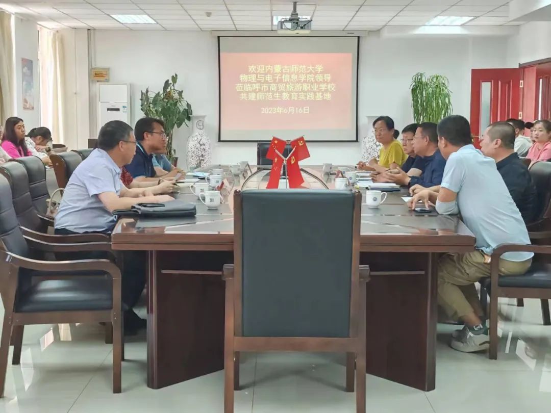 为进一步加强学生实习管理,了解学生在外实习的基本情况,增进与实习单位间的交流,6月16日,教务处副处长银福成、教务处毕力根格日勒老师、我院副院长那日苏、电子系主任梁学军老师一行4人到呼和浩特市商贸旅游职业学校看望电子信息科学与技术职教师范专业第一届实习学生,并与商贸旅游职业学校校领导、实习指导教师交流。