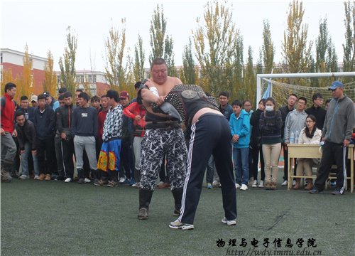 (本网讯 图/文 郑武超 张纹莹)10月12日一早,我院年轻的健儿们由我院学生会带队乘校车到达盛乐校区参加由我校公共体育教研部举办的趣味运动会、博克比赛和脚斗士比赛。在赛场上,比赛项目多种多样且富有极佳的乐趣,如博克、脚斗士、趣味保龄球、袋鼠跳、跳绳、踢毛键、蚂蚁搬家、负重跑、摸石过河等项目引起运动员和观众们的热烈欢迎。通过此次活,不仅展示了我院学生良好的精神风貌,而且更加凝聚了团队协作的强大战斗力!