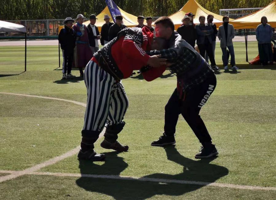 上午9时,我院14名运动员组成的代表队身着民族服装亮相“那达慕”大会开幕式。学院运动员迈着整齐的步伐,喊着嘹亮的口号步入赛场,充分展示了我院学生积极向上的精神风貌。比赛由搏克,哈日靶,布鲁,蒙古象棋四项组成,分为团体赛和个人赛。寒冷的天气未曾阻挡运动员们竞赛的激情,比赛场上,搏克的激情爆满,哈日靶的镇定沉稳,布鲁的胸有成竹,蒙古象棋的运筹帷幄,运动健儿一展风姿,喝彩不断。