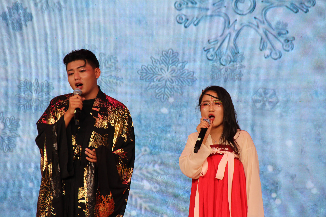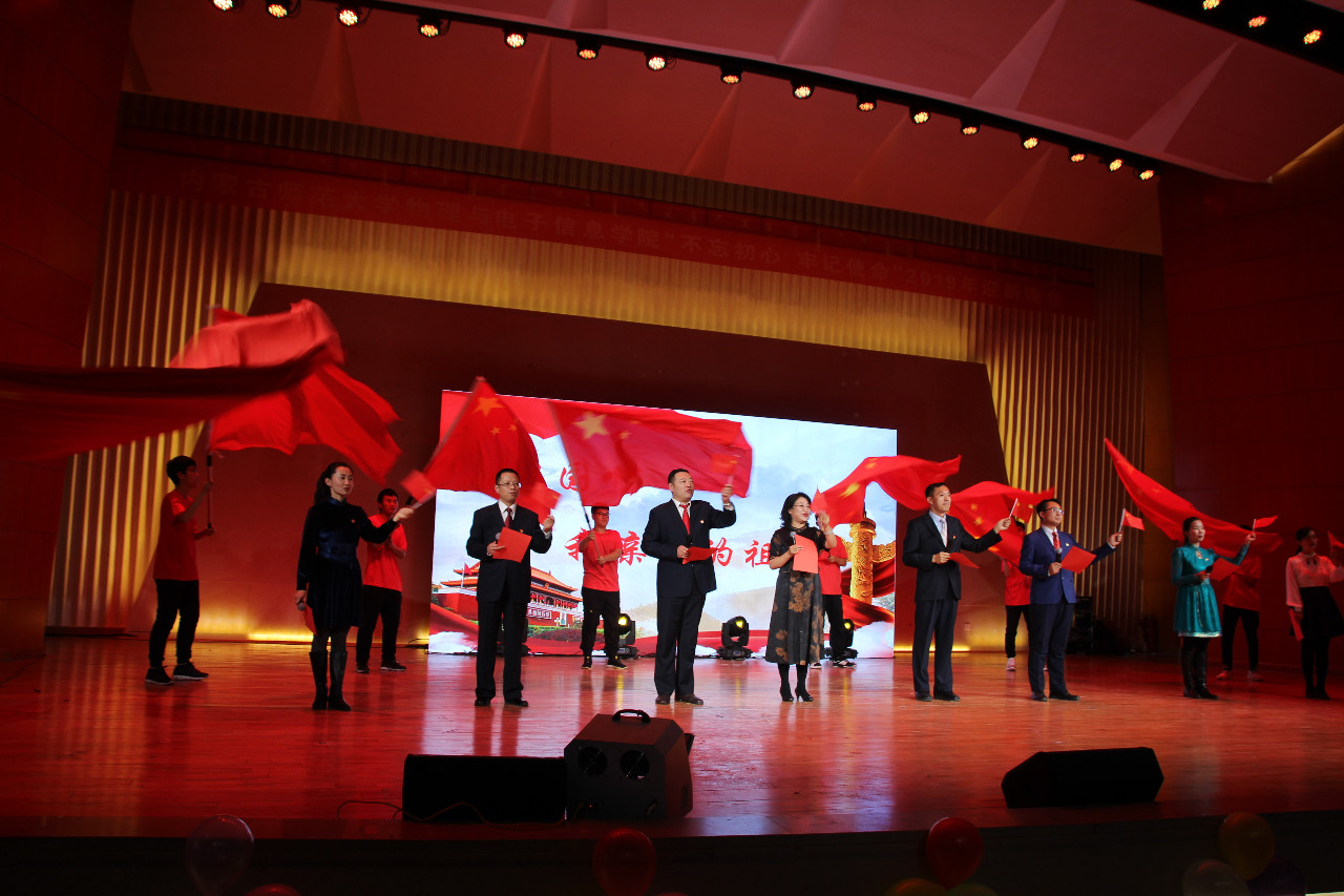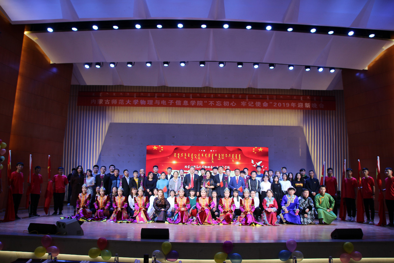 为庆祝新中国成立70周年,深入贯彻落实“不忘初心,牢记使命”主题教育精神,激发广大青年学子爱国之情、强国之志,11月22日晚7点,yl23455永利集团在盛乐音乐厅举办了“不忘初心、牢记使命”主题教育暨2019年迎新晚会。学院党总支书记刘美玲,副院长曹永军,党总支副书记兼副院长张伟,副院长那日苏,学院各系、中心负责人,各班班主任及辅导员与500多名新老学生,欢聚一堂。