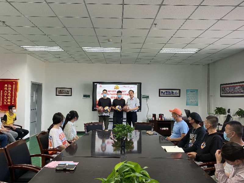 会后,学院领导、老师为各班级发放了篮球、排球等体育用品。