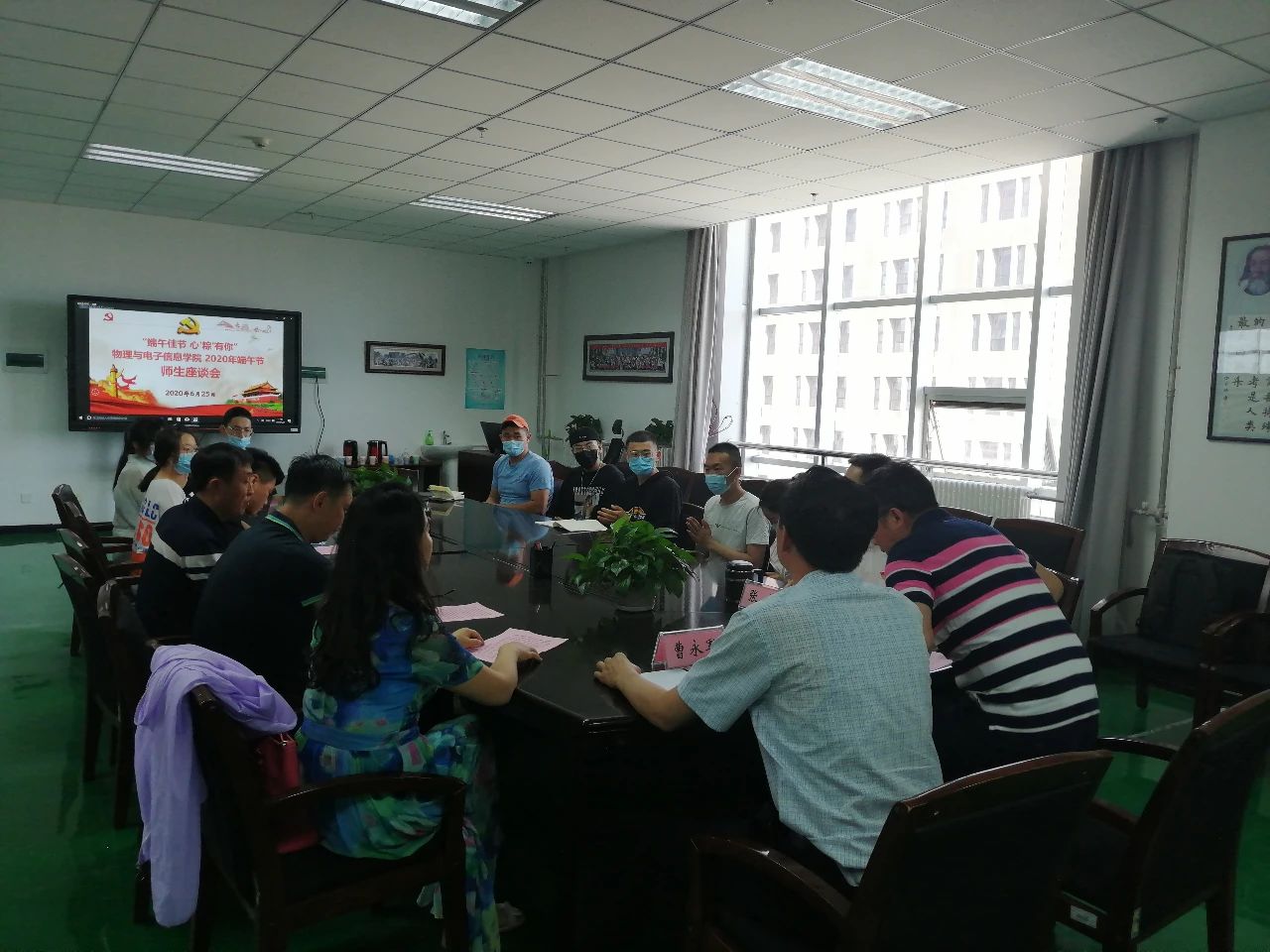 在全校上下统筹推进疫情防控和复学复课工作的重要时期,2020年端午节显得是那么的与“粽”不同。为深入了解疫情防控期间学生返校后的思想动态,关心关怀返校学生在学习生活中存在的困难,6月25日下午,yl23455永利集团举办了以“ 端午佳节 心'粽'有你”为主题的2020年端午节师生座谈会,邀请返校的本科、研究生各年级学生代表谈学业、聊理想、话生活、唠家常。学院领导曹永军、张伟、那日苏,系主任、班主任、导师、辅导员与20余名本硕学生代表进行了座谈。学院党委副书记兼副院长张伟主持会议。