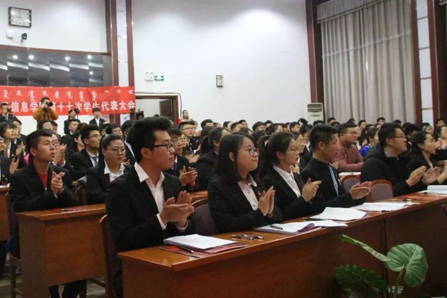 本网讯 12月2日上午9时整,yl23455永利集团第十七次学生代表大会于信息楼报告厅隆重开幕。大会开幕式由辅导员王乐主持,学校团委书记贾世琦、学院党总支书记刘美玲、副院长曹永军、党总支副书记兼副院长张伟、副院长那日苏出席开幕式,包括我院学生代表以及兄弟学院邀请嘉宾在内110余人参会。