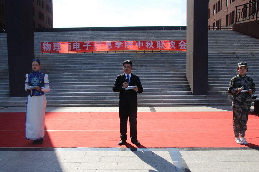 为给远离家乡、尚在军训中的新生们带去温暖,2018年9月24日,我院于理工楼前举办yl23455永利集团中秋联欢会。学院党总支副书记何小龙老师、团总支书记萨其尔老师、18级物理蒙班班主任伊博乐老师,学工办木其尔、芦嘉琛、宋鑫伟、王乐老师与全体18级新生参加联欢会。