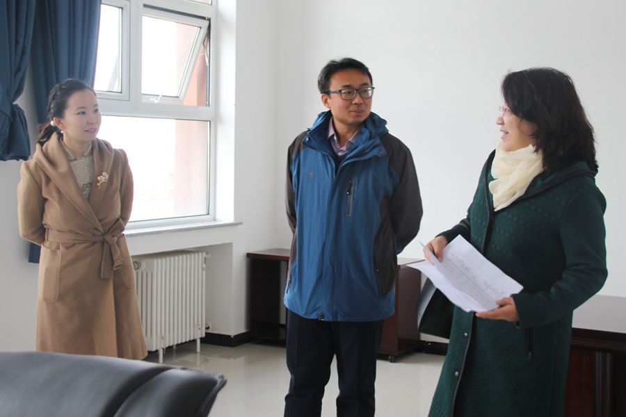 在团总支书记萨其尔以及实验中心主任张天臣的陪同下,领导们来到理工大楼详细查看了学院办公区的使用情况,并对办公用房分配、办公设备配置以及解决饮水等方面提出了具体方案。针对办公室和教室的供暖问题,领导们与维修工人亲切交谈,了解供暖不足的原因所在,并对他们表达了真挚的谢意。