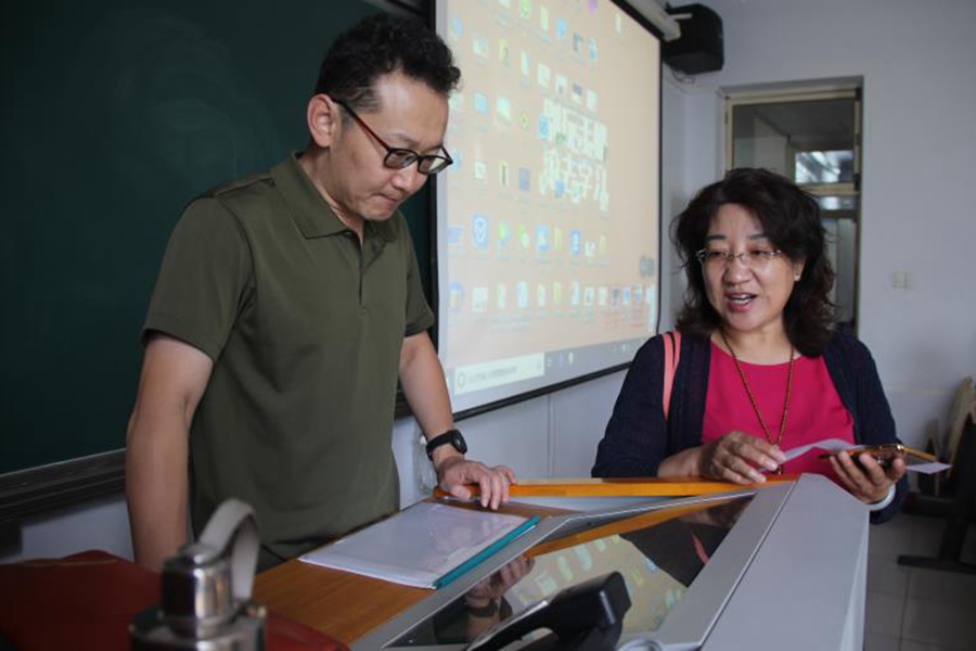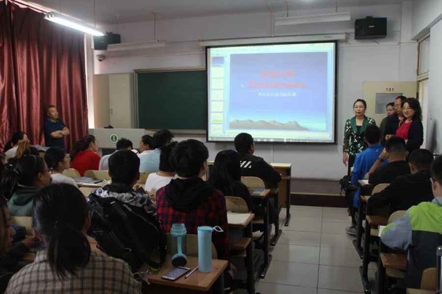 2018年9月3日,我院副院长刘美玲老师、物理系主任张敏老师、学院办公室斯琴老师、宣志国老师以及学工办辅导员等深入课堂,检查并了解我院新学期教学工作的开展情况。