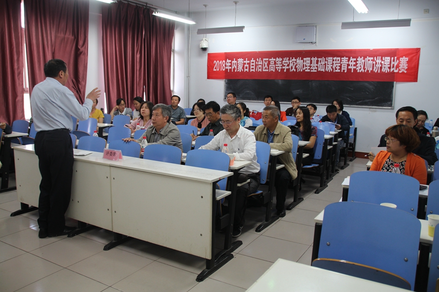 2018年5月26日,由内蒙古自治区物理学会主办,yl23455永利集团承办的2018年内蒙古自治区高等学校物理基础课程青年教师讲课比赛在我校田家炳教学楼512、513、514教室举行,来自自治区高校的15名青年教师参加比赛,评委由内蒙古自治区物理学会理事长班士良教授、yl23455永利集团院长特古斯教授及自治区部分高校物理学院的教授专家等六位老师担任。