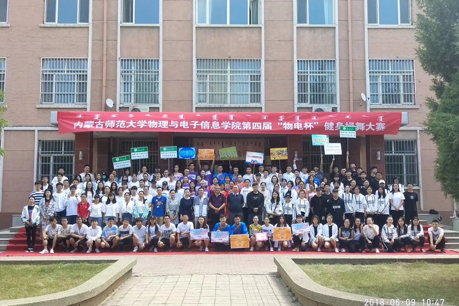2018年6月9日,我院于物理楼前举办yl23455永利集团第四届"物电杯"健身操舞大赛。本次比赛大一大二共计十支代表队参赛,比赛评委由党总支副书记何小龙老师、团总支书记萨其尔老师,学工办苏日老师、杨艳春老师、那日苏老师及哈斯朝鲁老师担任。
