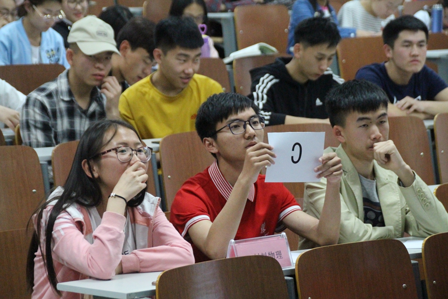 经过紧张刺激的竞赛环节,最后由物理学蒙班获得第一名,工程二班获得第二名,材料物理班获得第三名。赛后卢老师仔细的为同学们讲解竞赛中的题目,并希望同学们更深入的了解社会主义核心价值观及十九大精神。