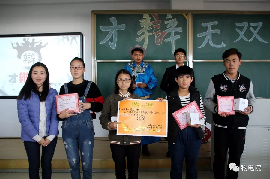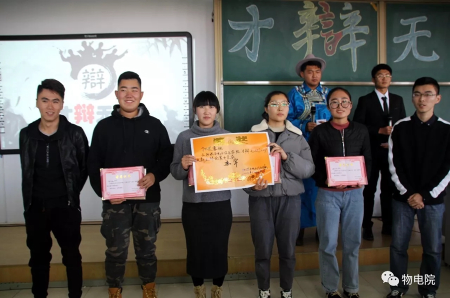 本网讯 2017年11月12日,我院“才辩无双”辩论赛决赛于行知楼310举行。为响应yl23455永利学生工作处、保卫处发布的《yl23455永利2017年秋季开学在校学生毒品预防教育“六个一”活动实施方案》号召,本次决赛以“健康人生,绿色无毒”为主题,共设有蒙语组,汉语组三场,分别围绕“禁毒主要靠政府力量还是社会力量”,“禁毒以预防教育还是惩治打击为主”,“吸毒和吸烟有无本质区别”三个辩题展开,学工办木其尔老师、校第十一届辩论赛最佳辩手齐美娟及院辩论队队员担任评委,来自法政学院的校第十届辩论赛最佳辩手苏日娜担任蒙语组特邀评委。 在这扣人心弦的决赛阶段,各支队伍旁征博引,气势如虹,进行激烈的交锋。观赛学生热情参与,认真聆听辩手们的论点论据,自由辩论环节将比赛气氛推向高潮,掌声不断。 最后,经过两周六场激烈的比赛,在评委们公正的评判下,电子信息工程二班荣获冠军,材料物理班获得亚军,物理蒙班获得季军。分别由木其尔老师以及学生会干部颁奖,以兹鼓励。同时,本次比赛设有最佳辩手奖,分别由物理蒙班的那日迈同学和电子信息工程一班的赵兴禹同学获得。本次新生辩论赛圆满地落下帷幕。 本次新生辩论赛不仅锻炼了新生的辩论能力和合作能力,还提高了同学们的思维反应速度、沟通技巧,增强了学生语言组织能力和应变能力。相信他们在未来的日子里,能够让物电院辩论队更上一层楼!