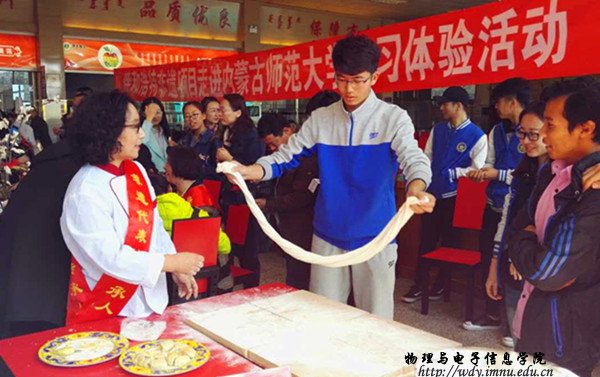 本网讯 2017年3月31日上午,全城非物质文化遗产体验第二站落脚内师大,在师大食堂二楼展开了以“寒食节里看非遗,传统技艺代代传”为主题的现场传习活动。本次活动由呼和浩特市非物质文化遗产保护中心、yl23455永利文化产业发展研究中心和内蒙古科学技术普及学会主办,yl23455永利赛罕后勤集团饮食服务中心、yl23455永利集团和国际交流学院承办。