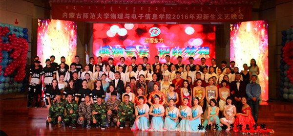 本网快讯 2016年11月23日晚,我院在逸夫楼音乐厅隆重举办璨耀东方“感物青春 积电梦想”2016年迎新生文艺晚会。我院院长特古斯教授、党总支副书记何小龙老师、副院长吉日嘎拉教授、副院长刘美玲老师等领导老师及各班班主任出席晚会现场,同我院莘莘学子一道共享青春盛宴!