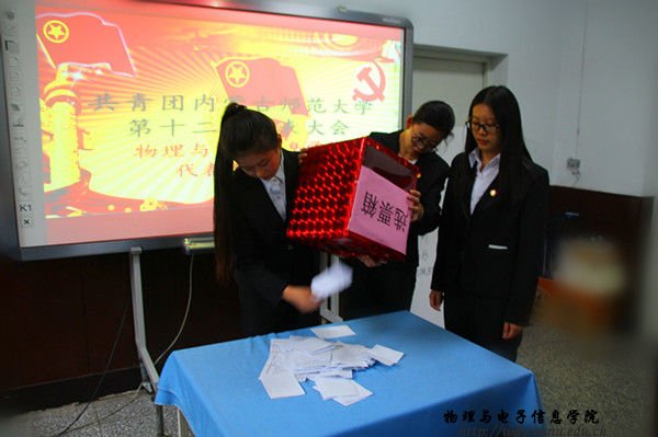 伴随团歌激昂的旋律,会议正式开始。首先由我院学生会主席冯楷森宣读批复,团总支助理蔡雅芳宣读《共青团yl23455永利第十二次代表大会代表选举法》,随后根据会议议程,与会人员对《选举法》进行表决。表决完毕后,由宣票人刘慧翎,监票人李嘉欣,计票人王静同学共同监督并组织进行投票表决。最终,经过差额选举的方式成功选举出萨其尔老师、苏雅拉老师、娜荷雅同学、连娇同学、崔丹丹同学、李昕彤同学、荀雪昕同学等七位同志为共青团yl23455永利第十二次代表大会代表。
