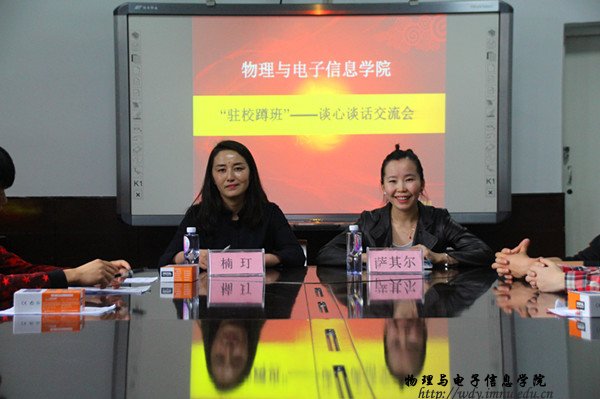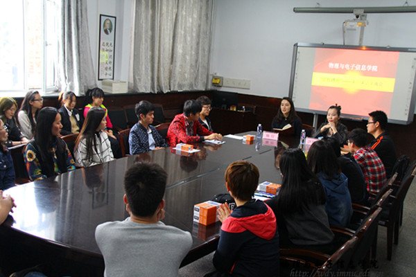 2016年4月1日,我院在物理楼会议室召开“驻校蹲班”——谈心谈话交流会,校团委楠玎老师、我院团总支书记萨其尔老师以及15级科技班同学参加本次会议。早在上周一,楠玎老师就与15级科技班同学一同组织了一次有关“驻校蹲班”的班会,班会中楠玎老师向同学们传达了2016年我校开展“驻校蹲班”的通知,讲解了“驻校蹲班”的深层意义,并详细介绍了围绕其展开的相关活动和工作要求。今天,楠玎老师为了更加深入的了解了学生思想动态和学习生活状况,从而与同学们更好地交流沟通,特别召开本次谈心谈话交流会。会上,楠玎老师向同学们了解了在日常的大学生活中、学习中等多个方面的近况和出现的问题。老师对同学们所反映的问题做了认真的记录,同时鼓励同学们积极地参与到日常学院开展的各类活动中,在活动中不断地提升自己。通过本次交流会,老师们对同学们的思想动态和学习生活状况有了更加深入的了解,为日后更加全面地加强青年学生群众工作打下了坚实的基础。