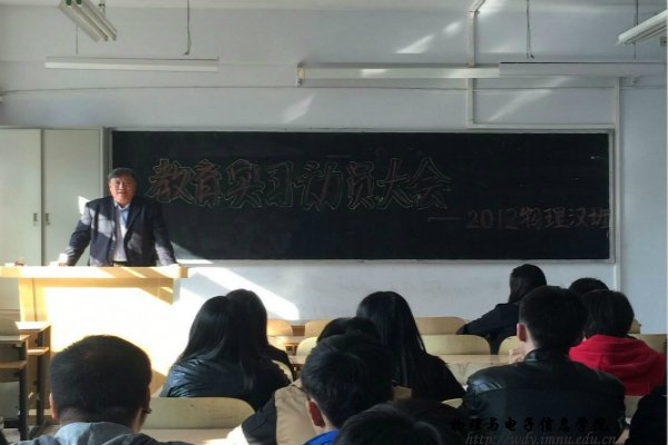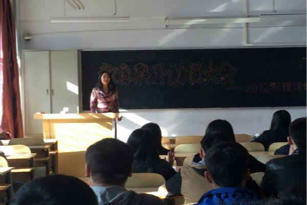 本网讯 2015年10月14日下午,我院在田楼120教室召开了12级物理汉班教育实习动员大会,出席会议的老师有我院副院长吉日嘎拉教授,实验创新部主任曹永军教授和12级物理汉班班主任李瑞芳老师。动员大会上老师们分别就实习的重要性、实习对于走向工作岗位的帮助以及实习时应该注意的事项进行了深入的讲解,并要求大家保质保量的完成实习任务。大会的最后吉老师鼓励大家珍惜机会,认真对待,争取通过实习使自己的能力得到提高。