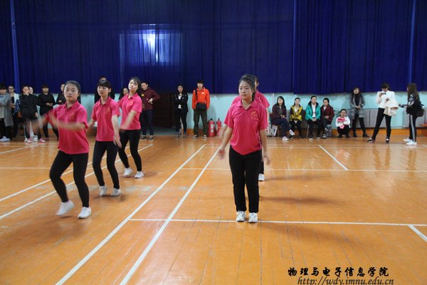本网讯 2015年11月4号晚,我院于东操场体育馆参加校级健美操比赛。由我院张容之等六名同学组成的参赛队伍在比赛中力求完美,团结一心,为评委们展现了一场精彩的健美操表演。凭借着他们饱满的热情和出色的演出,赢得了评委们的一致好评。最终获得了第二名的好成绩,为我院赢得了荣誉。通过此次比赛,充分展现了我院同学团结协作,努力拼搏的精神,同时希望同学们能把这种精神发扬到日后的学习工作中,为我院再塑辉煌!
