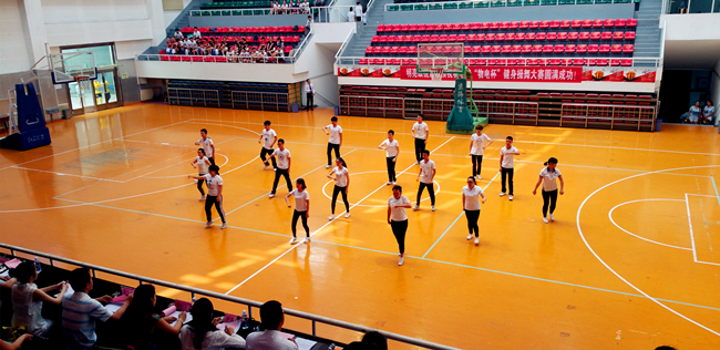 首先,副书记何小龙老师致大赛开幕词,他指出:健身操舞作为综合的大众艺术,是融体操、音乐、舞蹈于一体的追求人体健康与美的运动项目,通过将其与我院正在深入推进的“三走”活动有机结合,使我院广大学生达到改善体质、塑造体型、愉悦精神、陶冶情操等目的,更好的服务于日常学习生活。随后,院长特古斯教授宣布比赛表演正式开始;来自大一、大二年级的十一支代表队按照抽签依次进行了比赛表演,每支比赛队伍青春洋溢,激情澎湃,在动感节拍下舞动青春旋律,在欢声鼓舞中跳起的自信脚步;最终,经过评委现场打分汇总,14级工程班荣获冠军并捧起“物电杯”,13级物蒙班和13级工二班分获二、三名,经微信投票确定13级物蒙班荣获最佳人气奖;主持人宣布以上获奖名单,领导评委并亲切与各参赛队伍合影留念。在颁奖环节,同时颁发了“我宿我们行”宿舍文化月活动、“麦克斯韦的光圈”第二届摄影大赛获奖个人和集体奖项。