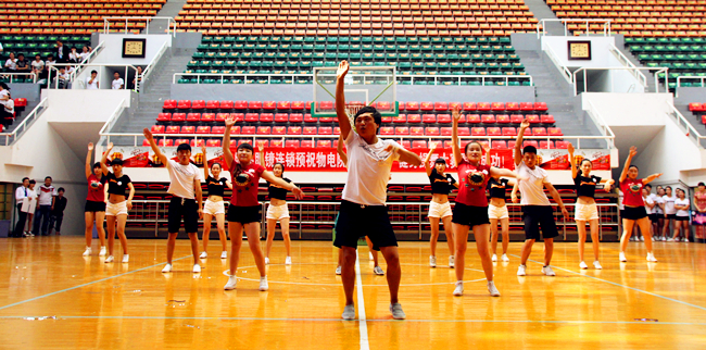 本网快讯 激情盛夏,似火青春。2015年6月28日下午3时,我院在体育学院篮球馆胜利举办首届“物电杯”健身操舞大赛及“我宿我们行”宿舍文化月和“麦克斯韦的光圈”摄影大赛颁奖仪式,再一次奏响了我院文化育人的新篇章。出席活动的嘉宾有院长特古斯教授、党总支副书记何小龙老师、各专业评委、赞助商代表及各班班主任,团总支书记萨其尔老师主持本次活动。
