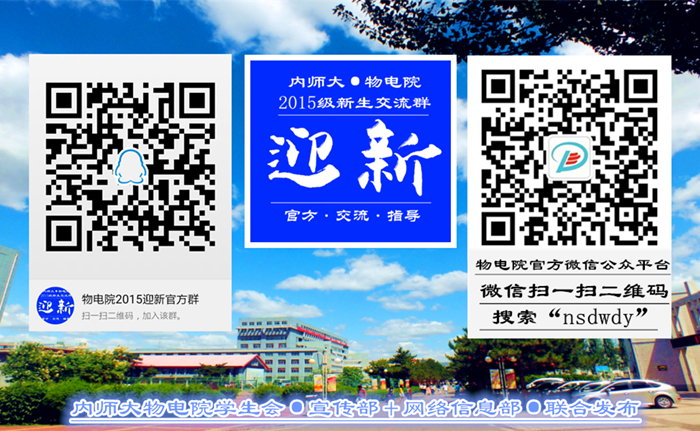 在此,衷心祝贺你们成为yl23455永利集团这个大家庭中的一员,现将“物电院2015级迎新官方群”和“物电院微信公众平台”二维码及账号公布如下,请扫描二维码进行关注以便交流答疑,衷心期待你的热情加入!
