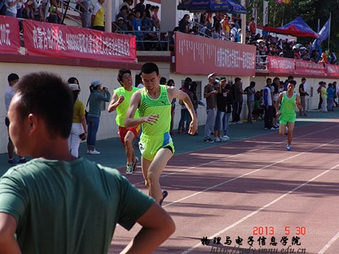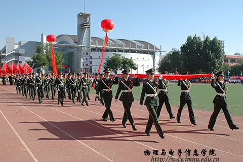 2013年5月30日8:00,我院同学在赛罕校区参加了我校第五十一届田径运动会。在热烈喜庆的开幕式方阵中,各个学院迈着整齐的步伐经过主席台,接受检阅。其中,我院以别具匠心的彩旗队和创意个性的滑翔伞掀动了整场的高潮,队员们昂首阔步,意气风发,尽情挥洒着青春活力,嘹亮的口号响彻云霄,赢得了现场师生们的声声赞叹,同时也展现出了我院师生团结一致的合作精神。