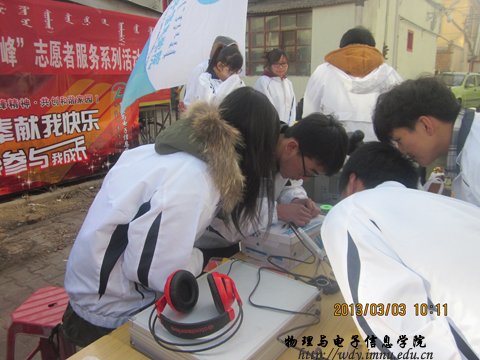 为推进我院“学雷锋”活动的深入开展,大力弘扬雷锋精神。2013年3月3日,我院科协在师大家属院开展了义务维修活动。团总支萨其尔老师、学工办呼和老师到活动地点指导工作。