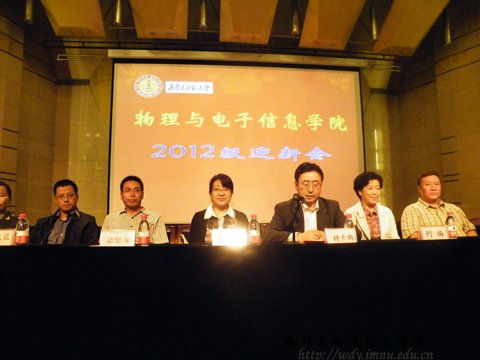 2012年9月4日晚7:30,为了让2012级新生进一步了解yl23455永利集团和我院各个专业等情况,同时为新生答疑解惑,我院在逸夫楼音乐厅举办了学院领导与新生见面会。出席此次会议的领导有:我院党总支书记阿梅老师、院长特古斯教授、党总支副书记何小龙老师、副院长吉日嘎拉老师、副院长刘美玲老师、办公室主任斯琴高娃老师、物理系主任张敏老师、电子系主任梁学军老师、实验中心副主任张天臣老师、团总支萨其尔老师、学工办呼和老师以及大一各班班主任。见面会由团总支萨其尔老师主持。
