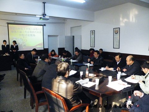 yl23455永利第六届教代会暨第八届工代会隆重召开,我院承担第四代表团的接待工作。以校长杨一江教授为组长的第四代表团一行22人,于2月29日下午15点在我院一楼会议室进行了分组讨论,我院师生为此次讨论现场的后勤保障工作做了充足的准备。