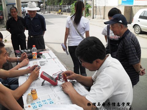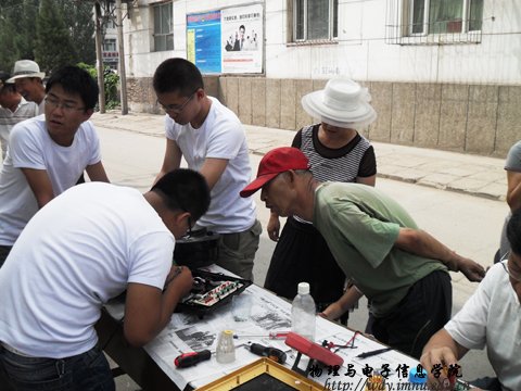 志愿者们刚把维修工具摆开,就吸引了许多居民的驻足和问询。面对居民们提出的各种问题,志愿者们都耐心地一一予以讲解,直到他们明白为止。不一会儿,居民们就纷纷拿来坏了的家电交给志愿者们维修。而志愿者们也不负众望,整个上午没有休息一刻,把居民们送来的家电能维修的维修,该换零件的换零件。当志愿者把修理好的家电交到居民们的手中时,他们脸上露出了满意的笑容。志愿者们的劳动使迎来者期望而至,送往者满意而归,即使炎炎烈日,身上衣衫尽汗湿也毫无怨言。
