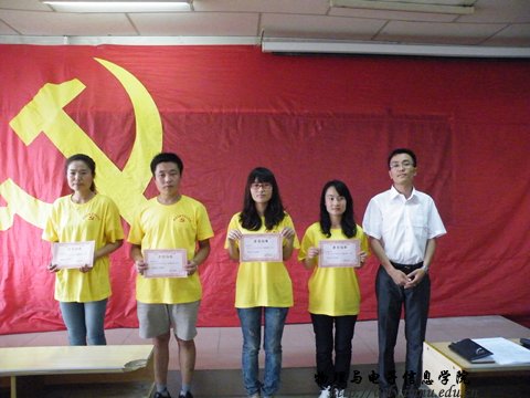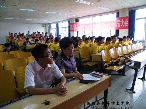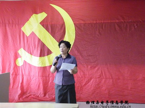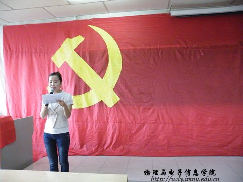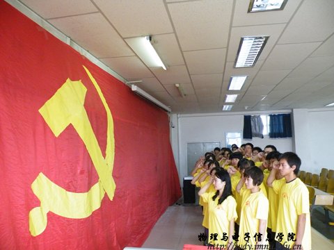 7月1日14:30我院在五共召开庆祝中国共产党成立九十周年暨物电院新党员宣誓大会。我院全体学生党员和预备党员参加了此次大会,参加此次大领导有我院党总支书记阿梅老师、党总支副书记何小龙老师,大会由团总支萨其尔老师主持。