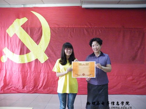 大会首先由萨其尔老师代领新党员宣誓。然后由阿梅老师致词,鼓励同学们继续努力向身边的优秀党员学习,努力提高自己的自身素质。大会的最后阿梅老师和何老师为优秀党支部和优秀党员颁发获奖证书。