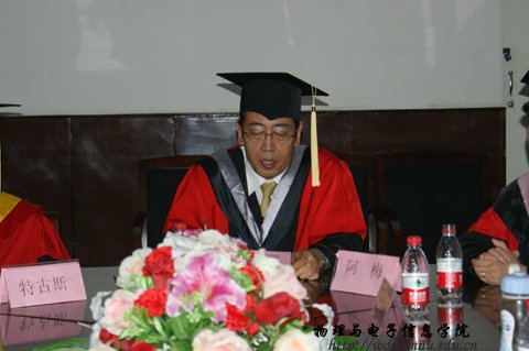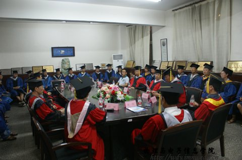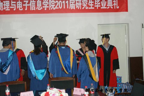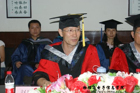 7月5日下午16:00我院在物理楼会议室隆重举行了2011届硕士研究生毕业典礼暨学位证书颁发仪式,参加毕业典礼的有,院长张伟教授,党总支书记阿梅老师,党总支副书记何小龙,副院长吉日嘎拉、副院长刘美玲和学院全体研究生导师及2011届全体硕士毕业研究生。
