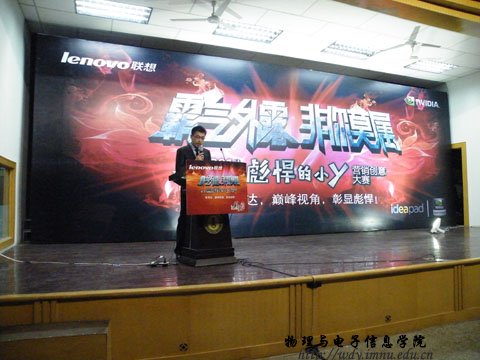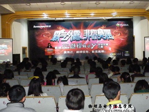 4月26日19:00联想集团在生物楼报告厅召开“霸气外露,非你莫属”--2011联想idear彪悍的小y营销创意大赛校园宣讲会。本次宣讲会由yl23455永利联想idear精英汇第一届会长我院08工程4班赵鹏同学主持。参加本次宣讲会的嘉宾、领导有:联想集团晋蒙分区消费业务处业务经理王翠敏,联想集团晋蒙分区商用业务处业务经理任胜龙,联想集团晋蒙分区消费业务处品牌经理于磊,yl23455永利集团党总支副书记兼副院长辛智俊老师,yl23455永利集团团总支书记何小龙老师,盛乐校区管委会张伟老师。