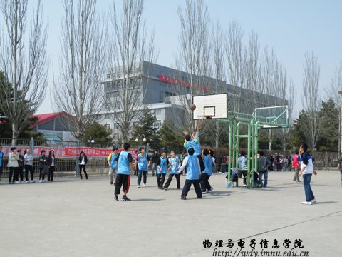 3月31日中午12:20,由学院学生会体育部组织的班级篮球友谊赛在东篮球场进行第三场初赛,比赛G组是08汉对战08工二,H组是09汉对战08工一,I组是09工一对战10工三。