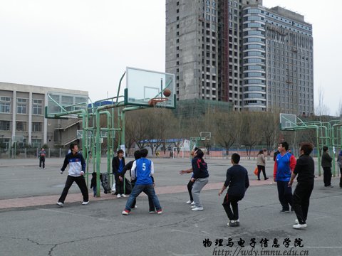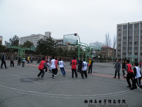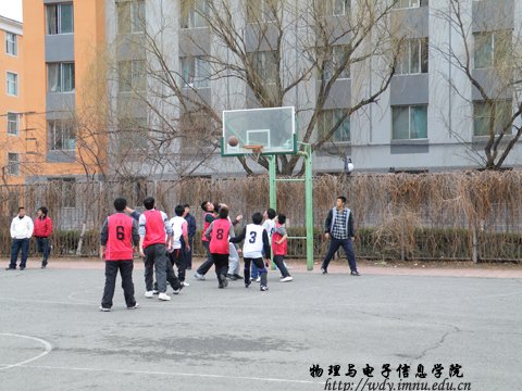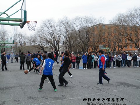 41中午12:20,由学院学生会体育部组织的班级篮球友谊赛在西篮球场进行第二轮小组循环赛第一场,比赛是A109工二对战A209蒙、B109科技对战B209工一、C108工一对战C208工四。
